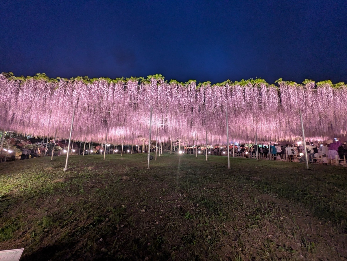 While the wisteria were stunning in daylight, the nighttime light up gives off an ethereal effect. Many people come to the park to see the wisteria after dark. There were parts of the park that seem more crowded after dark that in the late afternoon.