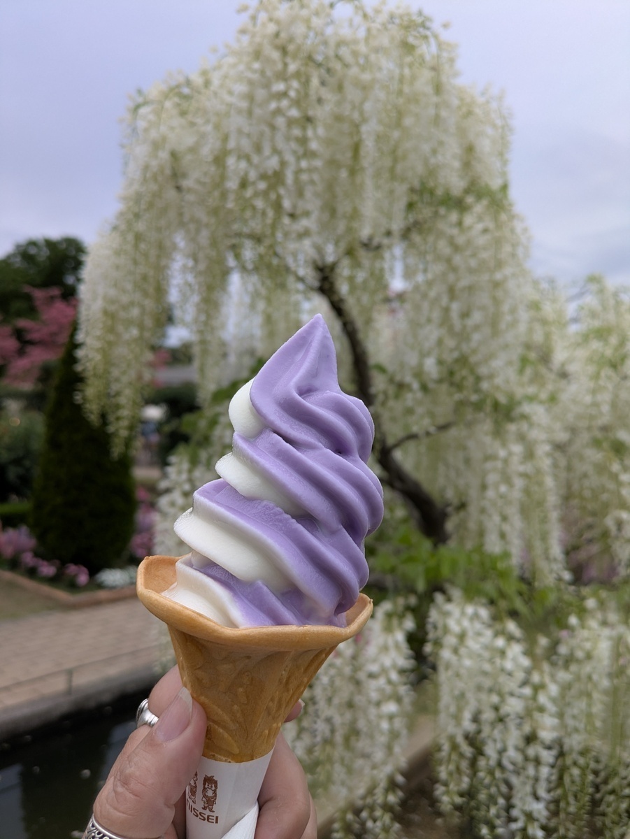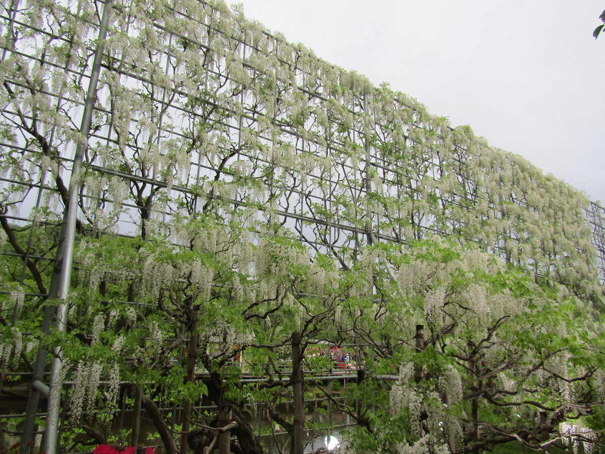 Last year, a friend was saying that she wanted to go to the Ashikaga Flower Park to see the 150-year-old wisteria. When I saw that my wisteria started to bloom, I sent her a message asking if she'd like to go. She suggested to go on a weekday to avoid the crowds, so I took a day off on Wednesday. She came to pick me up at the station and off we went.